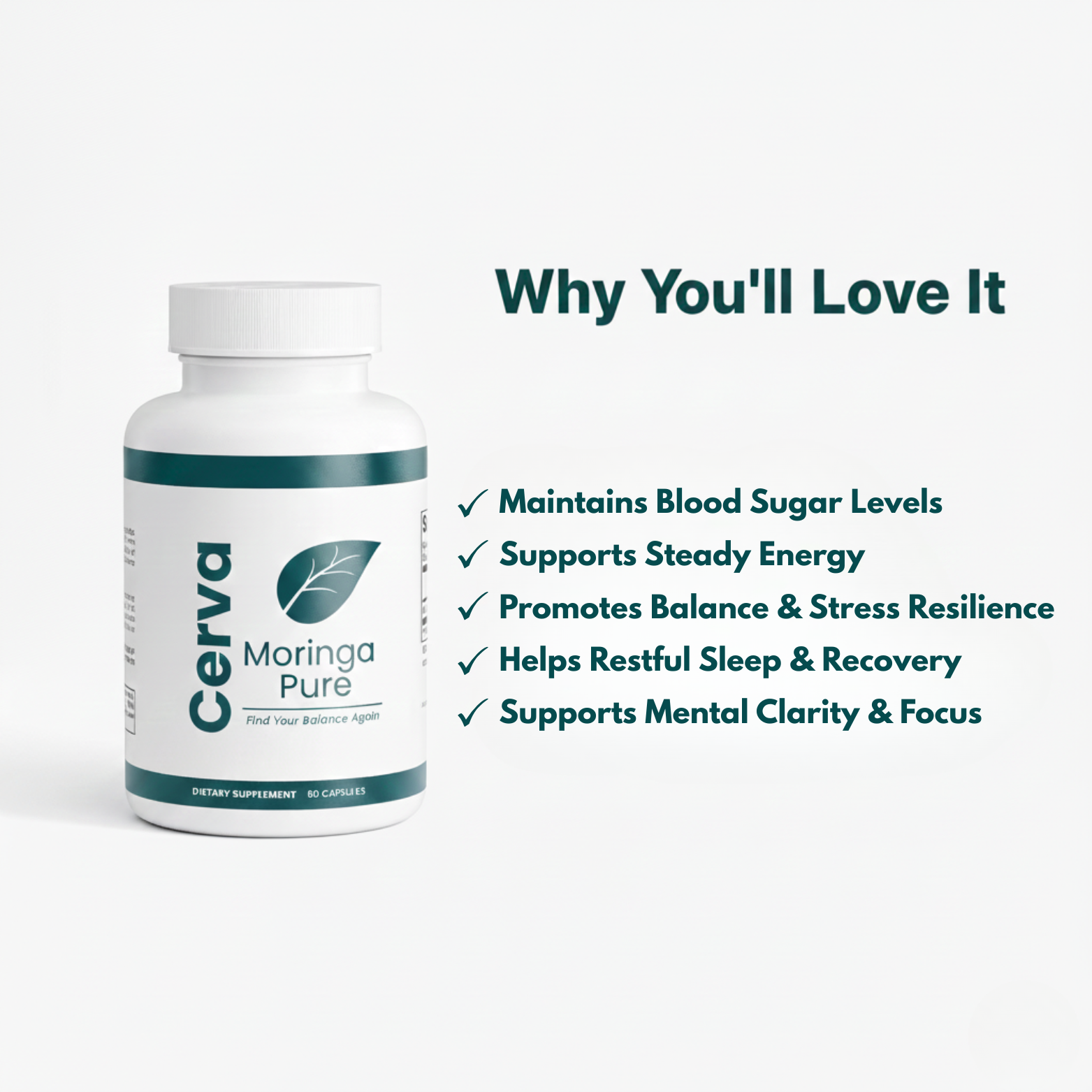 Cerva™ Moringa Pure works by supporting the body’s natural glucose and insulin processes at the cellular level.
